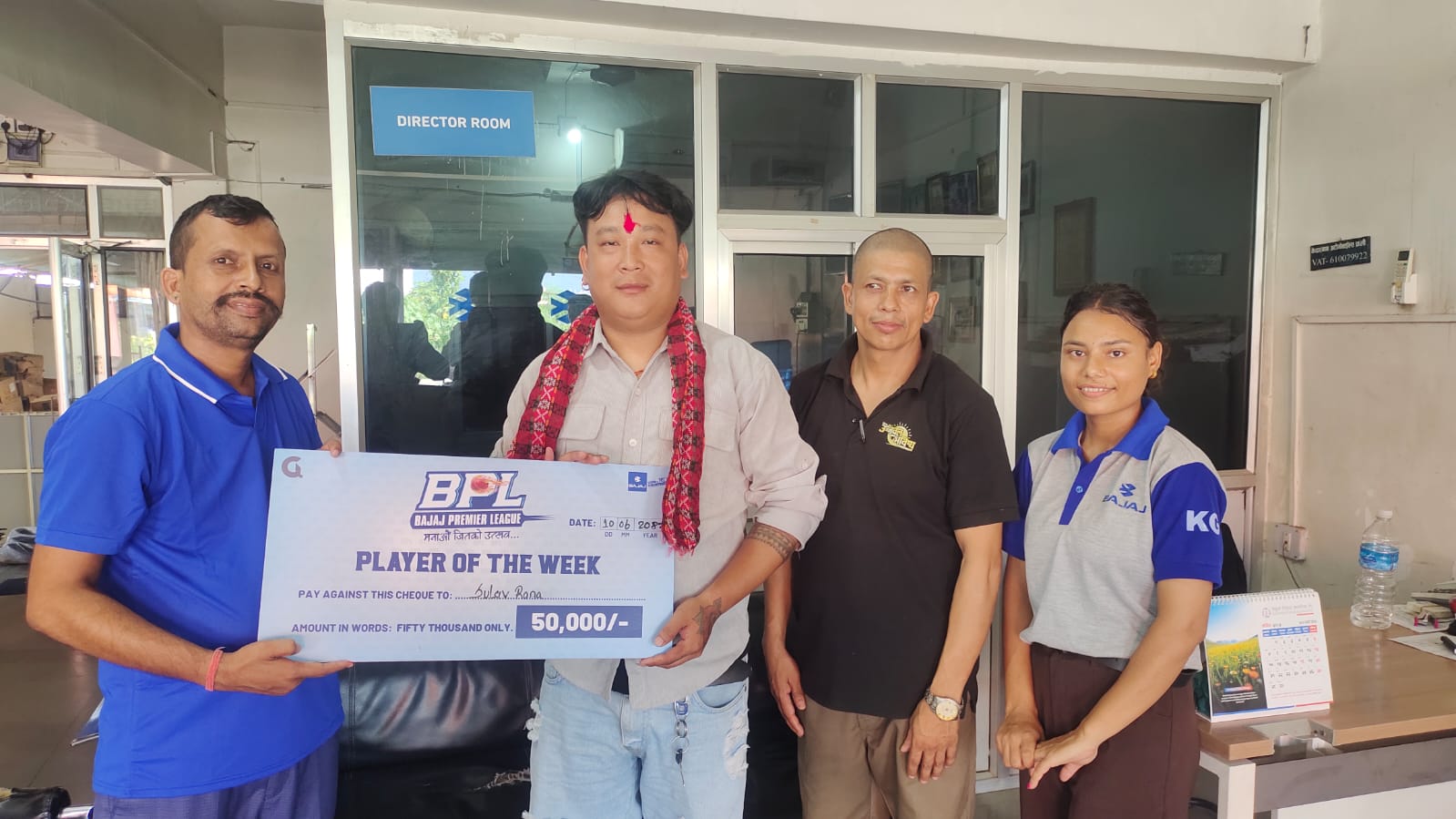 बजाज सोरुम वैरीयाबाट मोटरसाईकल खरिद गरि बाणगंगा १० मेचकुरीका सुलभ रानाले रु ५० हजार नगद प्राप्त गरेका छन् । बजाज सोरुमको दशै तिहार अफर अन्तर्गत प्लेयर अफ द विक मार्फत लक्की ड्र बाट ५० हजार नगद प्राप्त गरेका हुन् ।
