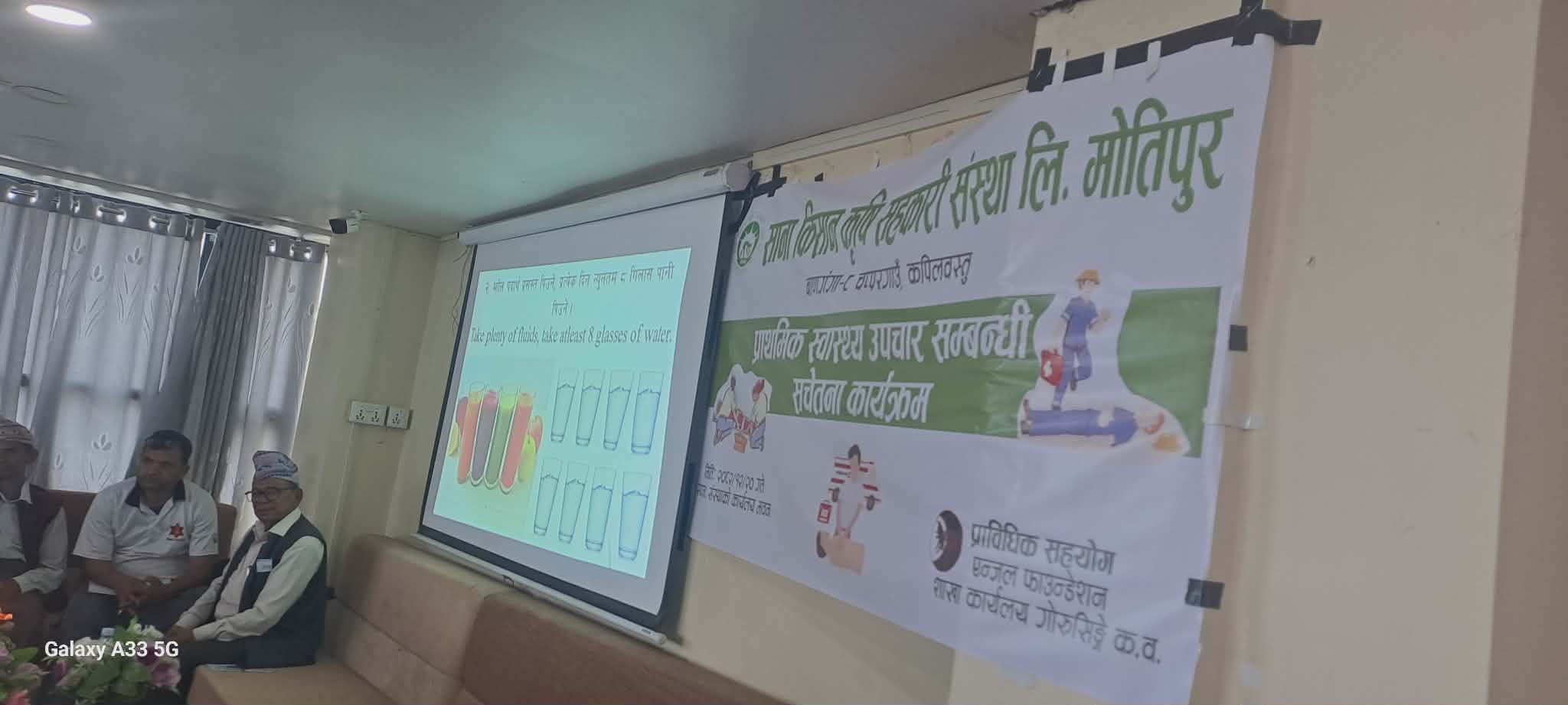 साना किसान कृषि सहकारी संस्था मोतिपुरको आयोजना तथा एन्जल फाउन्डेशन शाखा कार्यालय गोरुसिंगेको प्राविधिक सहयोगमा विभिन्न रोगहरूको निदान, बच्ने उपाय तथा प्राथमिक स्वास्थ्य उपचारसम्बन्धी एक दिने सचेतना कार्यक्रम सम्पन्न भएको छ।