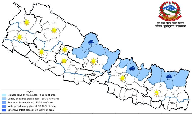 भाेलि पश्चिम नेपालमा वर्षा र देशभरका हिमाली क्षेत्रमा हिमपातको सम्भावना