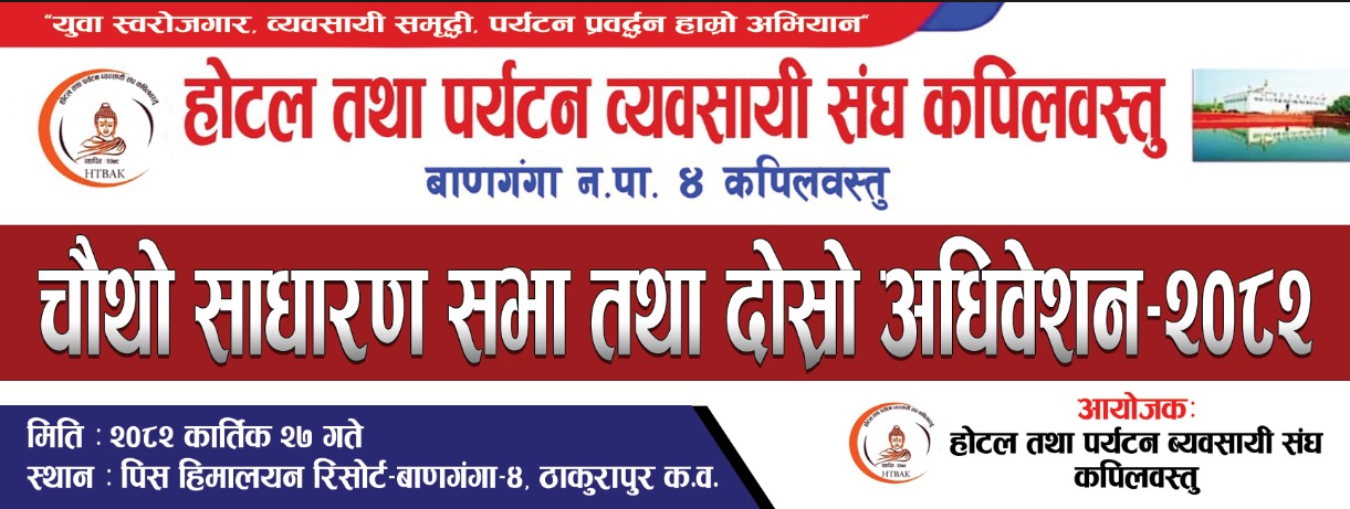 होटल तथा पर्यटन व्यवसायी संघ कपिलवस्तुको दोस्रो अधिवेशन भोलि कात्तिक २७ गते हुने